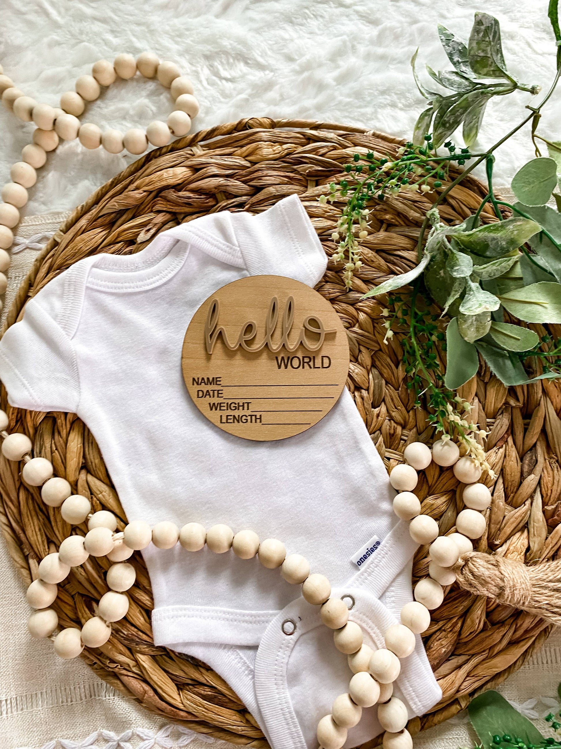 Hello World Birth Stat Announcement Wood Disc - Layered 3D