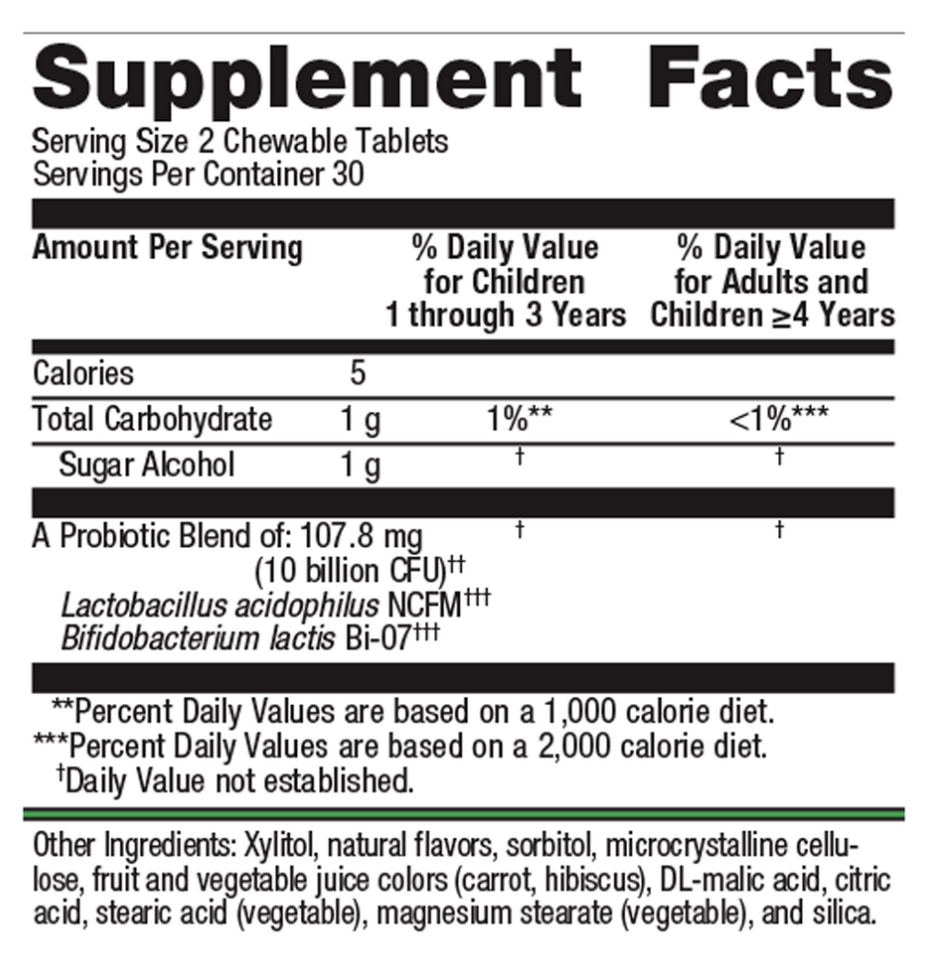UltraFlora® Kids ProbioticNutrition is a top priority early in life, and children may not get the beneficial bacteria they need for good gut health from diet alone. UltraFlora® Kids Probiotic is a proprietary blend of “friendly” bacteria clinically studied to support a healthy intestinal environment.* Highly viable blend of L. acidophilus NCFM® and B. lactis Bi-07® Delicious, natural grape flavor They do extensive quality testing to guarantee CFU count shown on the label through expiration. Please follow storage instructions on the label to ensure product viability.